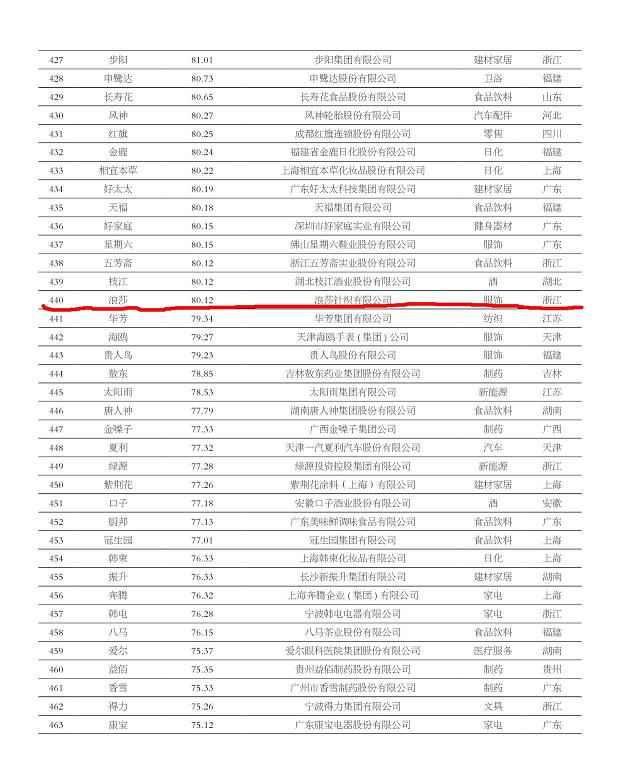 2016年第十屆中國品牌價值500強揭曉——浪莎榜上有名