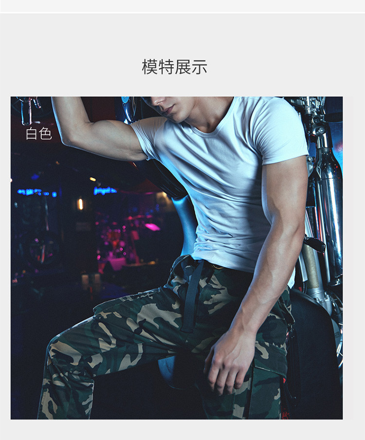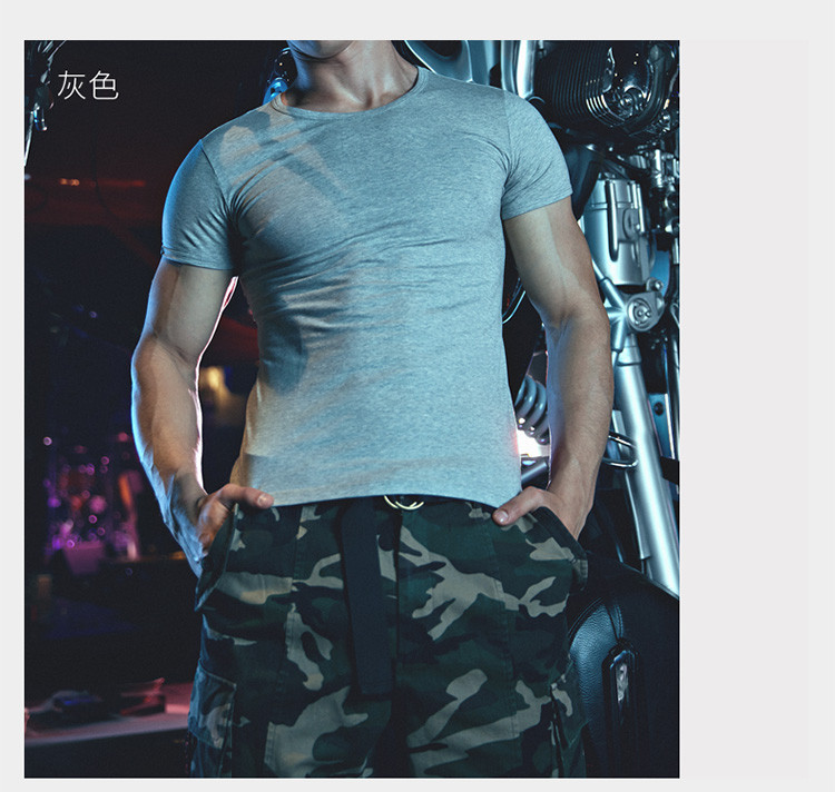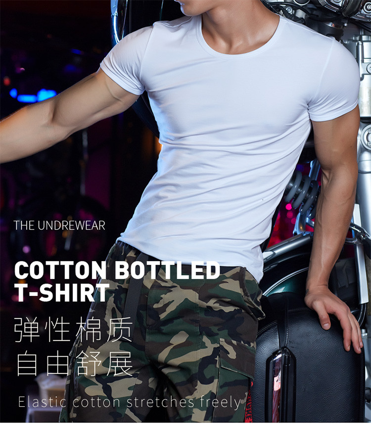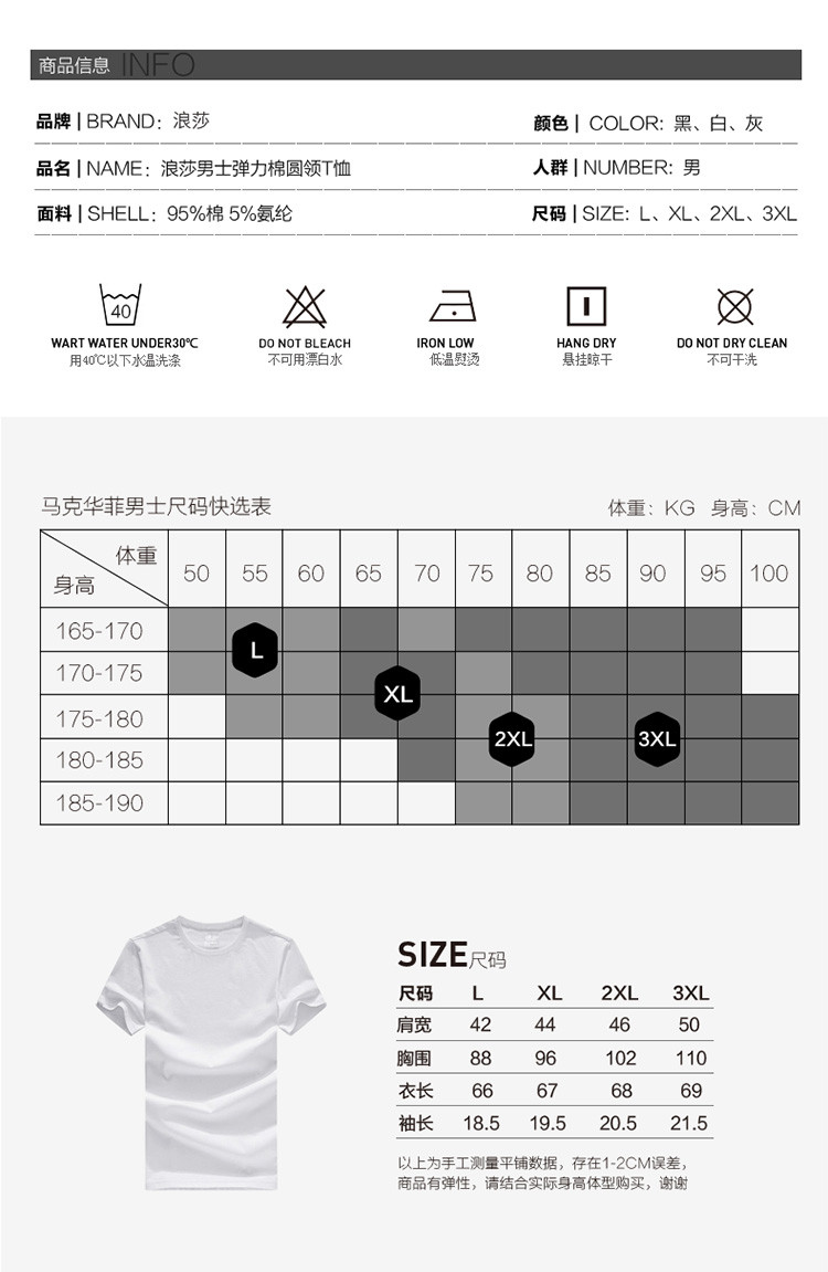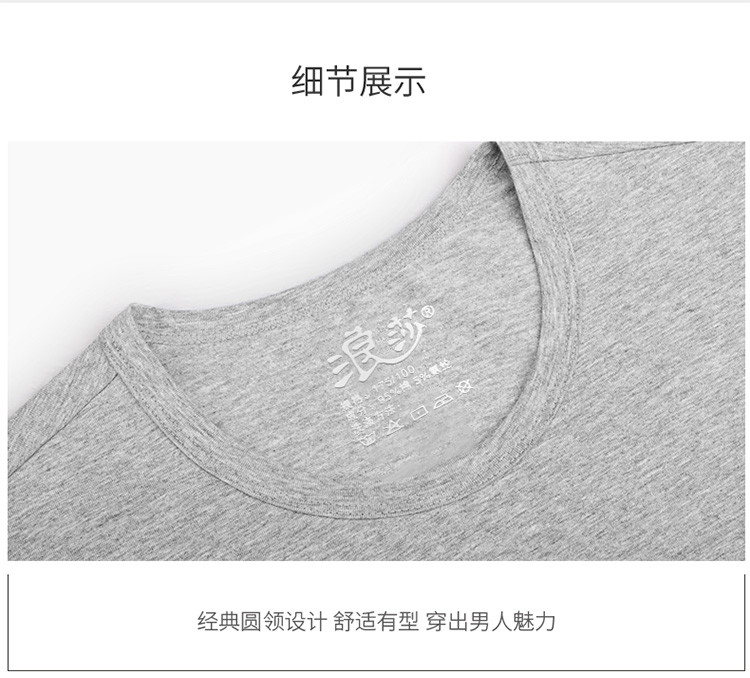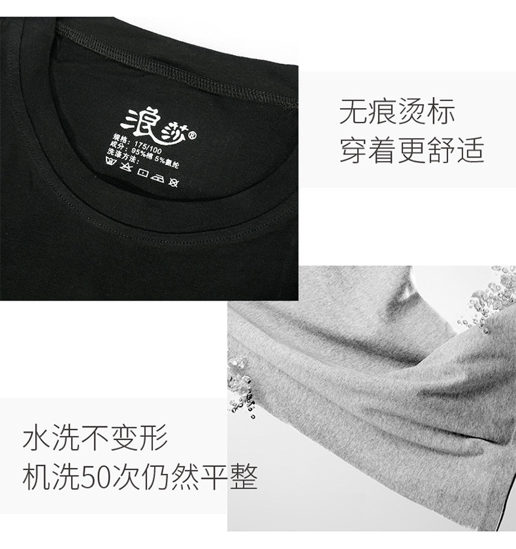 2件浪莎透氣春夏簡約男士彈力棉圓領運動T恤領休閑短袖