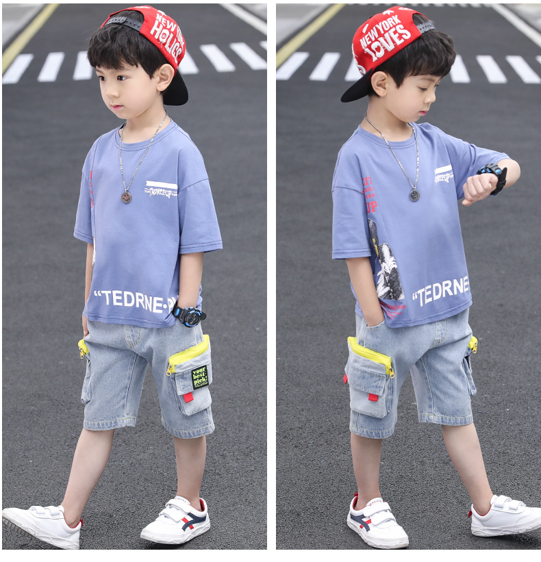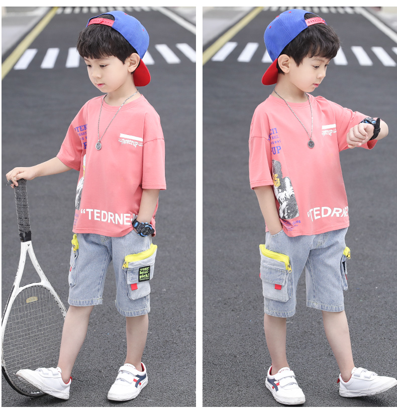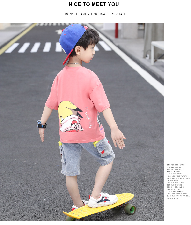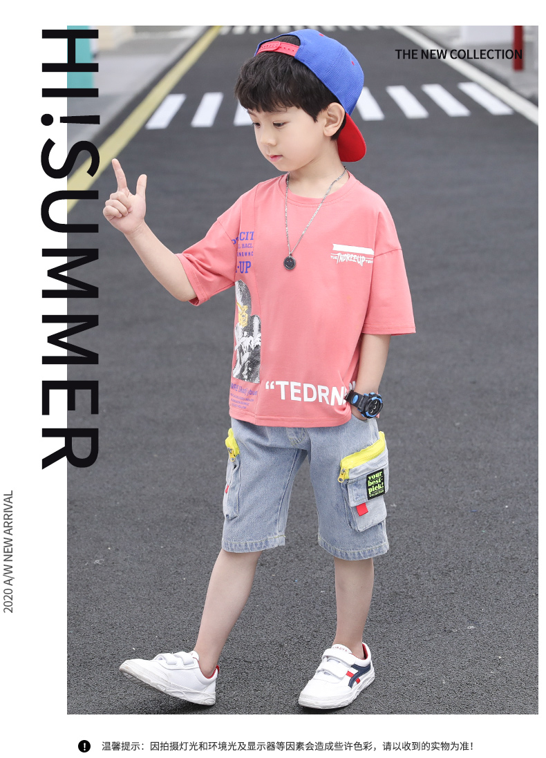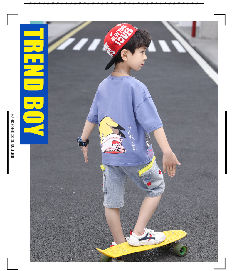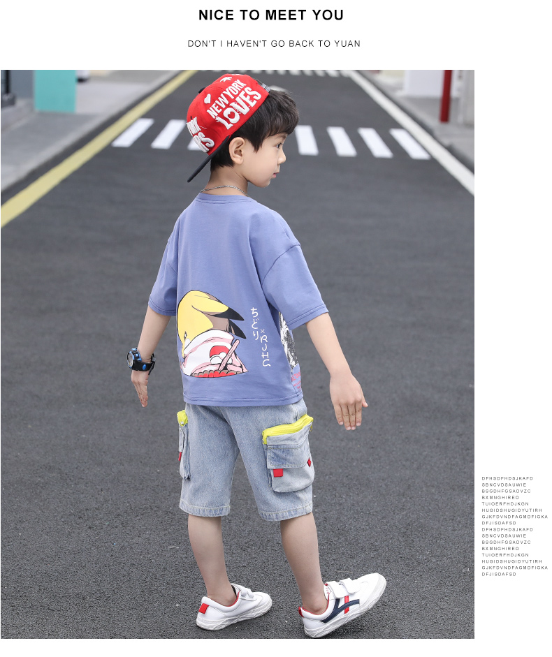 浪莎童裝兒童男童短袖套裝2021新款夏裝中大童兩件套寶寶卡通套裝