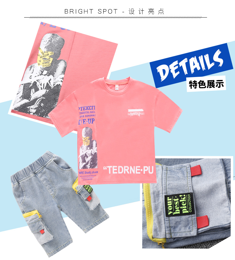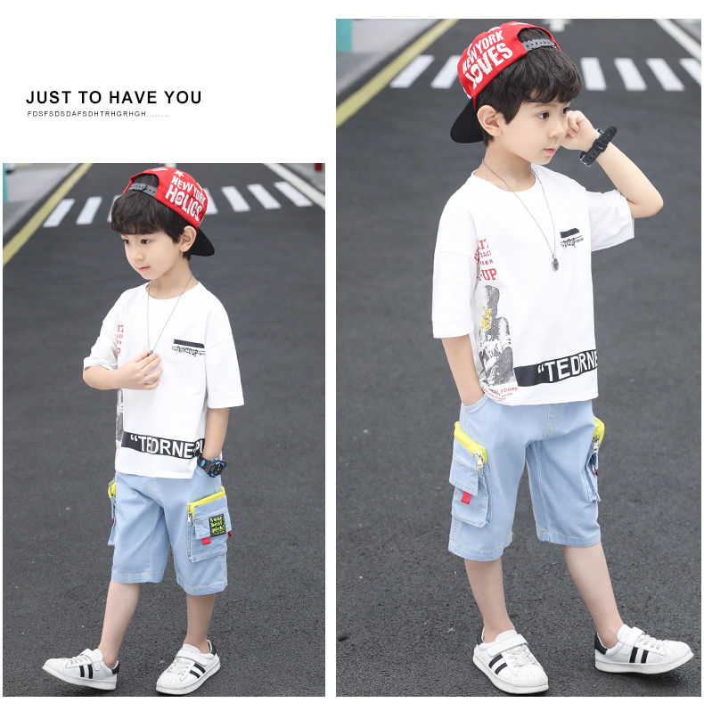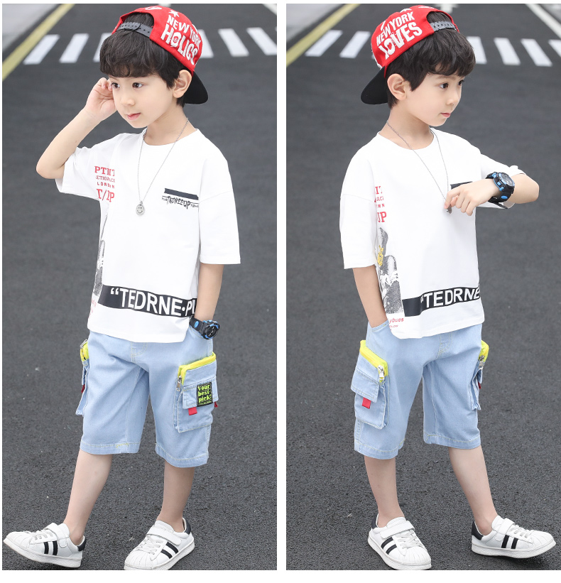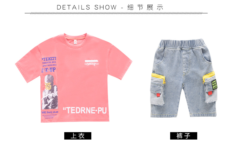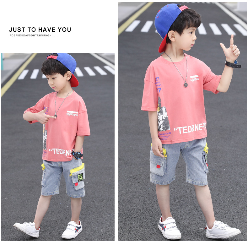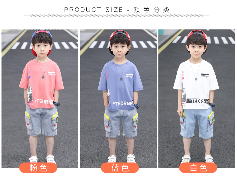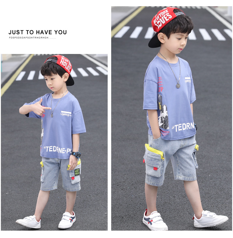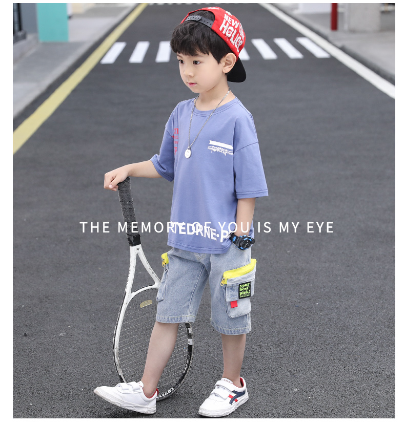 浪莎童裝兒童男童短袖套裝2021新款夏裝中大童兩件套寶寶卡通套裝