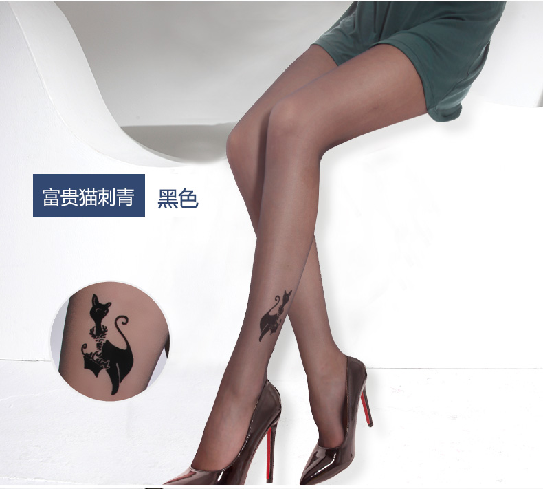 浪莎提花絲襪女 性感時尚假紋身刺青連褲襪薄款 防勾絲黑絲襪