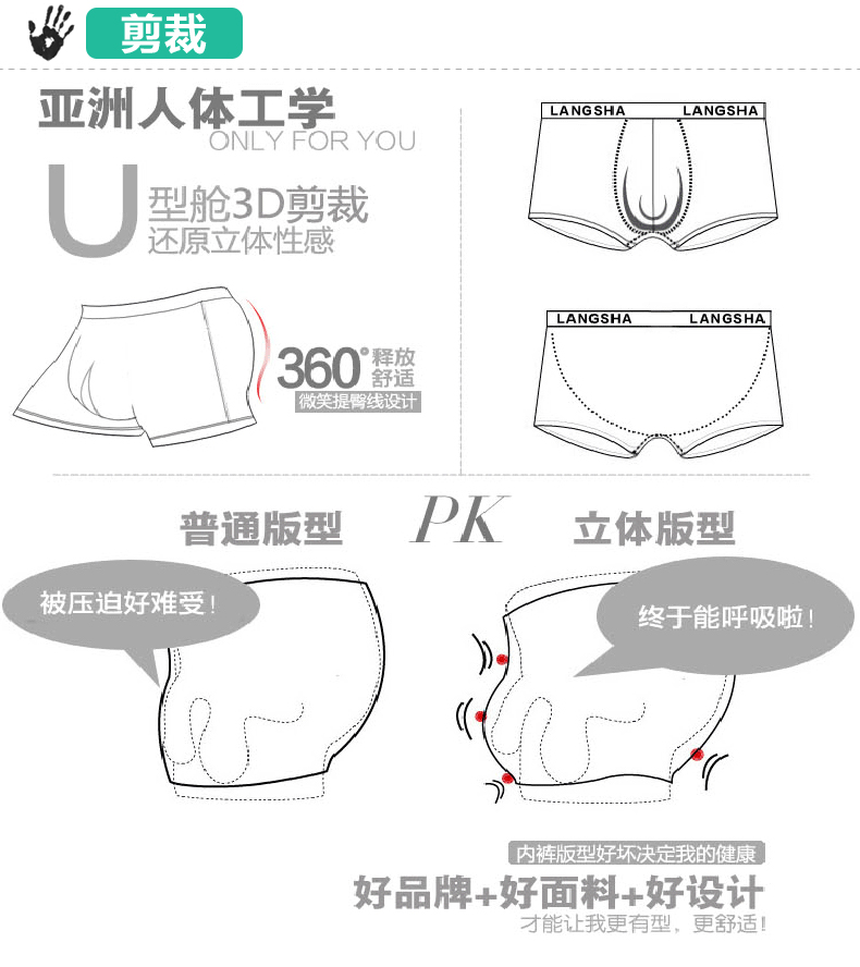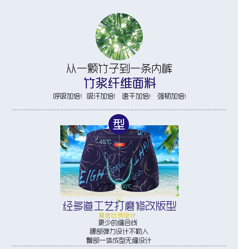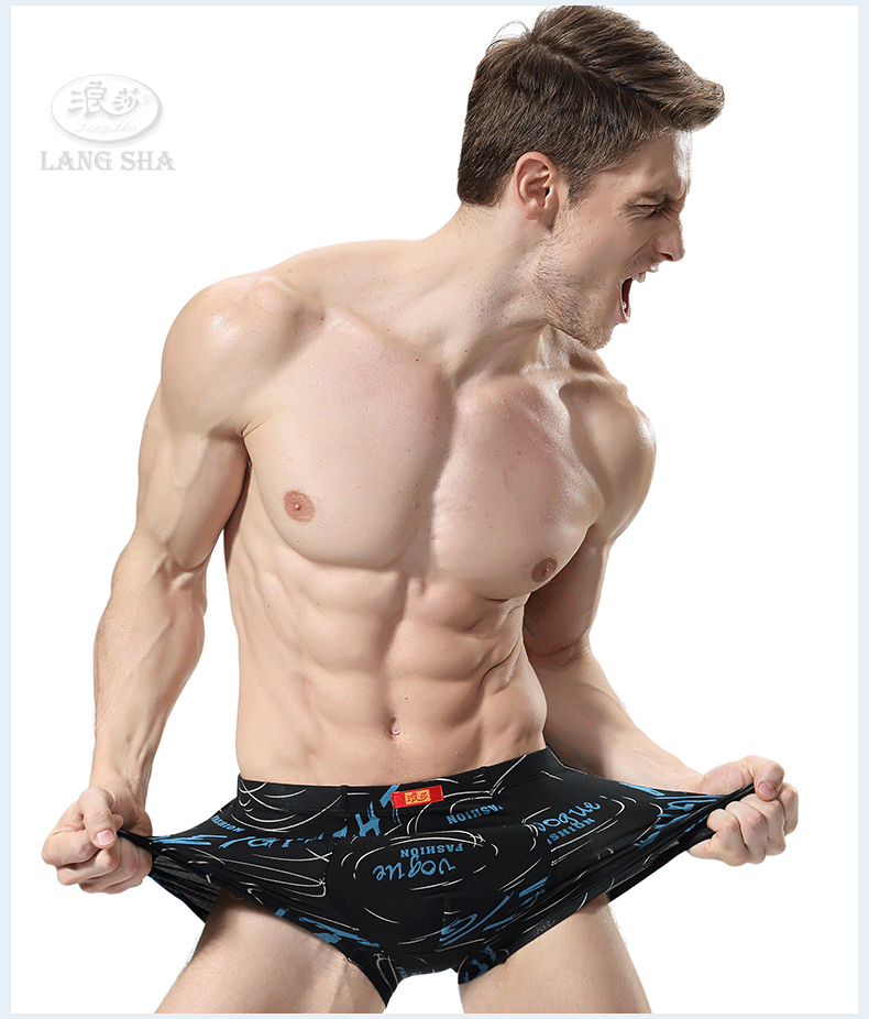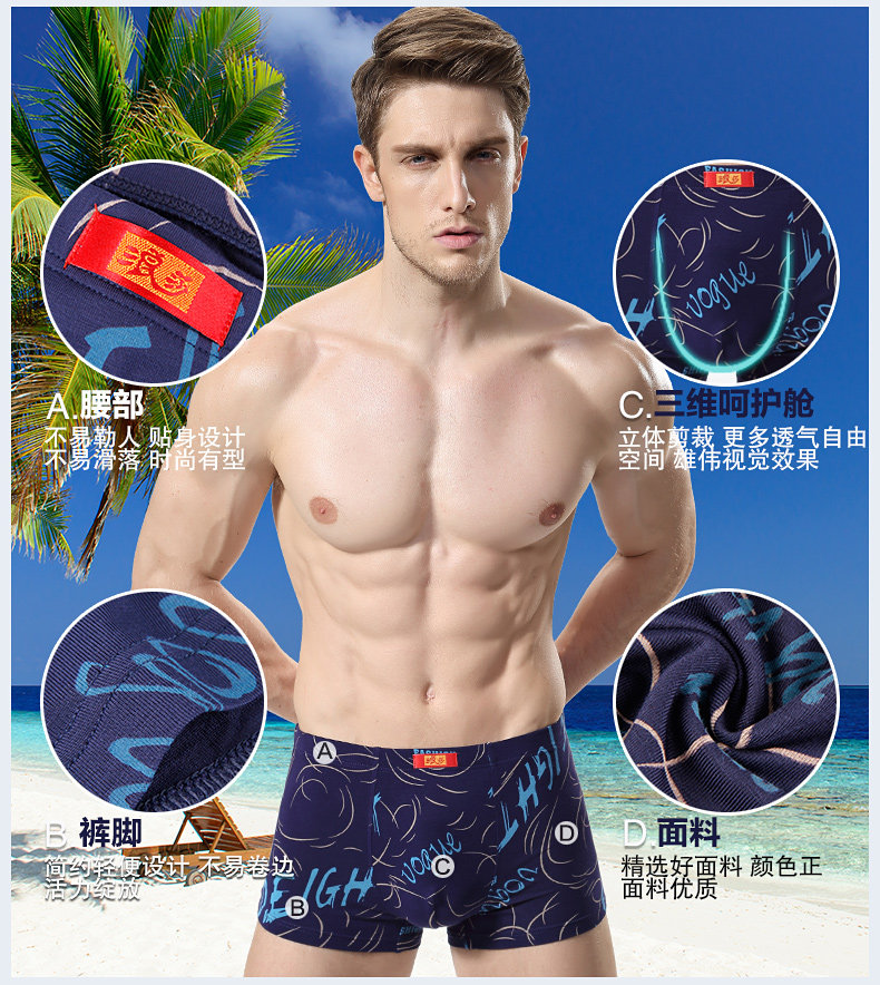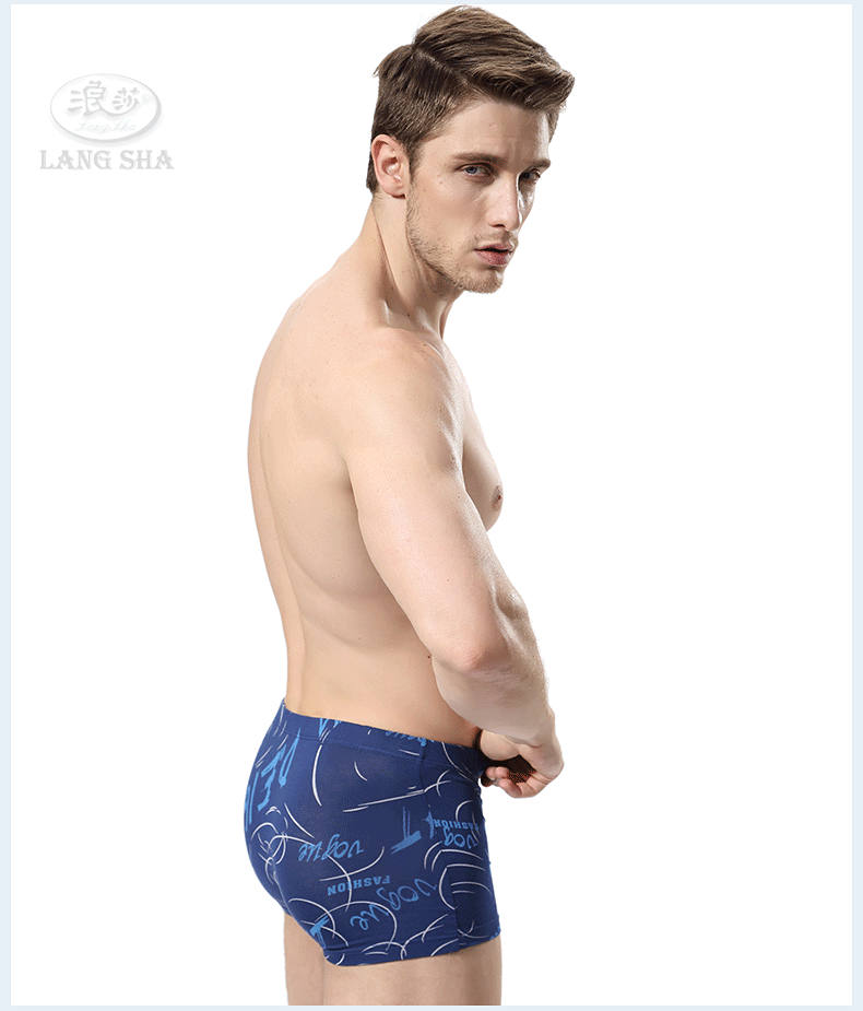 浪莎內褲 男士平角褲中腰青年春夏透氣U凸印花四角短褲衩男